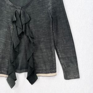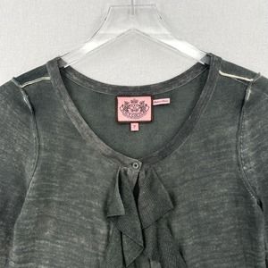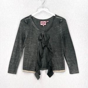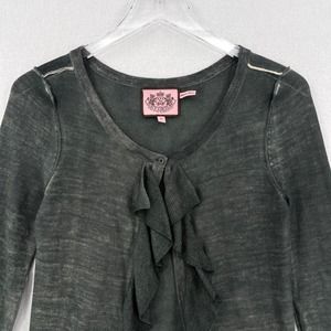 JUICY COUTURE Cardigan Sweater Womens XS Gray Merino Wool Ruffle One Button