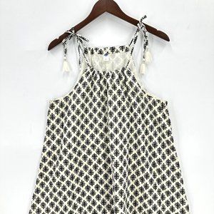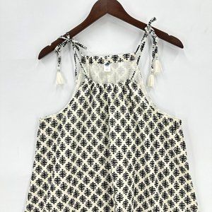 Old Navy Mini Dress Womens Sleeveless Tie Shoulder Tassel Ikat Lace Hem Black Cream M