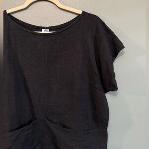 Cute West Kei animal print, tie front blouse. Decorative buttons (not functional) with a pullover V-neck style.