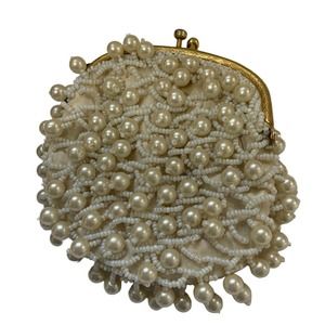 Vintage Cream Beaded Coin Purse The Broadway British Crown Colony Hong Kong
