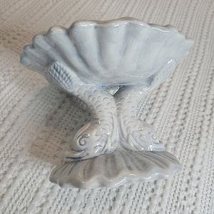 Soap Dish Koi Fish Blue White Vintage 1980's Signed