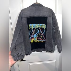 NWOT / Never been worn before Junk Food Clothing DEF LEPPARD 87-88 Faded Black/Grey Jean Jacket Patch Long Sleeves Jacket with 2 Front pockets and buttons as well. In size XXL. Grungy rock band Jean jacket would look great with some boots and fishnets to a rock concert. The reason for the price is because I love this Jean jacket and it is a truly treasured piece that I haven’t worn but one day I might gain enough confidence to so until then it will be listed for sale until then. It also takes up some space that I need as well. There is a lot of weight to the jacket hence the shipping price. There is so much life left in this newly never worn jacket so I want it to go to a loving special home! Def Leppard is a British rock band formed in Sheffield in 1977. They rose to fame in the 1980s with their album "Pyromania" (1983) and achieved even greater success with “Hysteria” (1987), which produced hits like “Pour Some Sugar on Me” and “Love Bites.” Def Leppard continued to produce music.