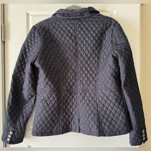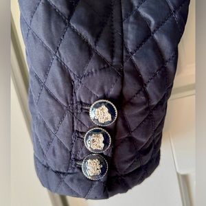 Vintage 90’s Metric Knits quilted button up blazer jacket, size: Large in navy. Lightweight and super comfortable. Excellent condition. The buttons are the best detail (see photo).
