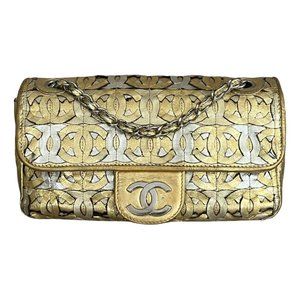 Calfskin Crackled CC Mix Flap Gold Silver