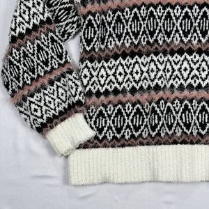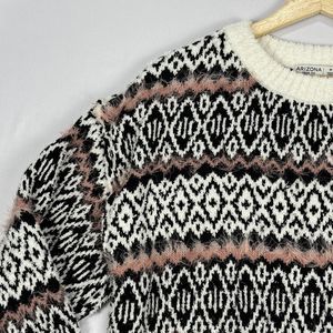 Arizona Jean Company Cozy Knit Sweater Womens Crew Neck Size Medium Geometric Pattern