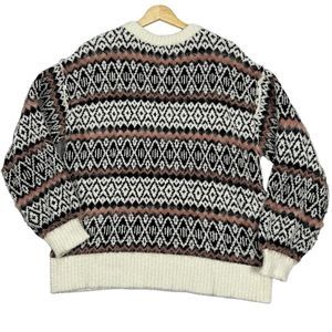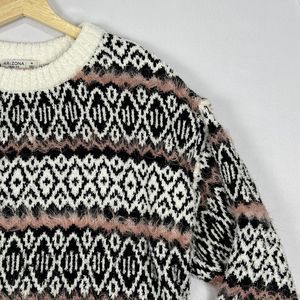 Arizona Jean Company Cozy Knit Sweater Crew Neck Size Medium Geometric Pattern