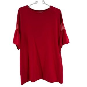 Umgee red t-shirt dress short bell sleeve mesh detail mini dress casual
