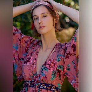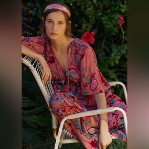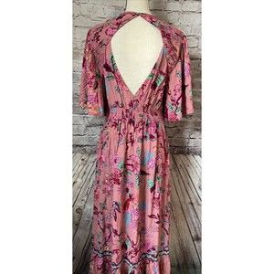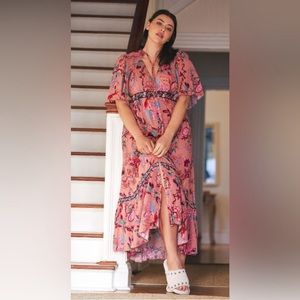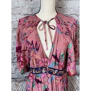 Anthropologie Ruffled Embroidered Maxi Dress Women Casual Printed Boho Cut Out M
