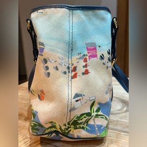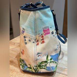Painted by British artist Pippa Cunningham, the Ailleurs collection takes you on a journey to dream destinations. The Escale captures the eternal allure of white sand, turquoise sea and lazy hours spent reading under a brightly coloured beach umbrella. This collection was designed to combine the freshness and radiance of the brightly colored summery prints with the refinement of leather details. More than 30 pigments were used to paint the canvas to create the subtle effects of watercolor, using a technique called serigraphy. Let Louis Vuitton whisk you away on your dream vacation with this stunning tote, perfect for the jungle, city or beach!