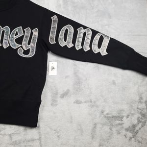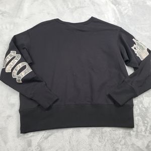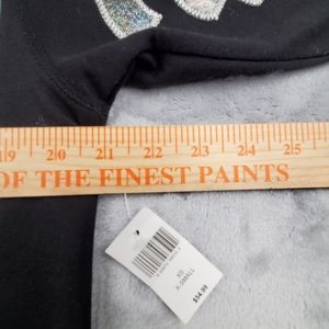 Disney Womens XS Disneyland Long Sleeve Top Black Silver Shimmer Spell Out NEW