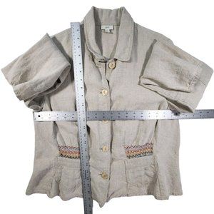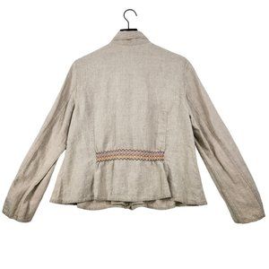 j.jill Blazer Womens Medium Linen Tan Button Down Embroidery Pockets Collared