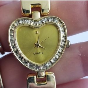 Heart watch gold tone ladies wristwatch