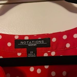 Notations women polka dot blouse. 2 front pockets. Button down.