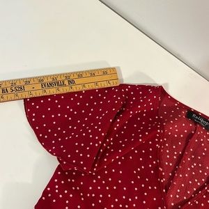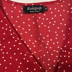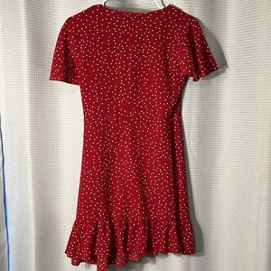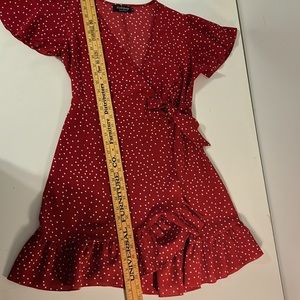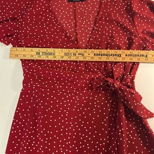 Relipop Women’s Wrap with Ruffle Hem Mini Red with white polka dot Dress
