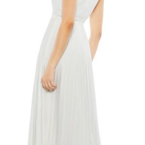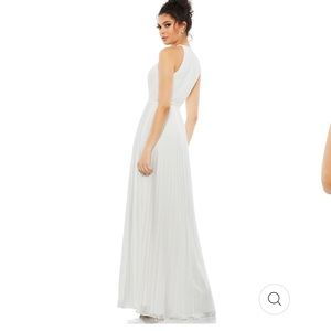 MAC DUGGAL SZ 10 WHITE PLEATED HALTER NECK FLOWY GOWN NEW