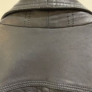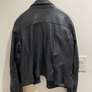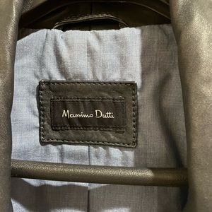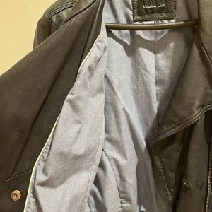 Massimo Dutti dark blue leather jacket, size M, feminine motorcycle-style jacket