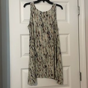LOGO by Lori Goldstein layering tank. Scoop neckline. Fun print. Super soft. Semi fitted through the bust flaring to a full bottom. 95% rayon; 5% spandex.