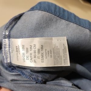 NWOT denim dress by Simple Joys by Carter's size 18 months. Button down midway dress with tiny rainbow on pocket. Can either be long sleeve or cuffed sleeves (shown in photo). This dress is prefect for any occasion. Made with 100% cotton. I have quite a bit of toddler girl clothing. Bundle to save or make me an offer. Comes from a non-smoking, pet-friendly, low-tox home. Thanks for shopping my closet.