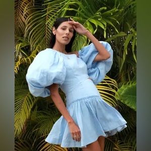 Aje Chateau Cut Out Mini Dress Sky Blue US 2 NWOT $425