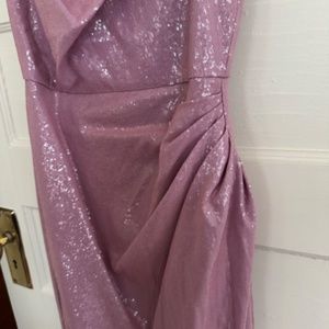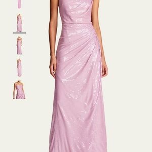 Halston "Alania" sequin gown crafted from stretch fabric features ruching at the waist