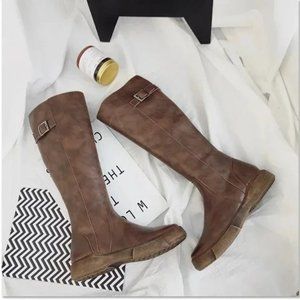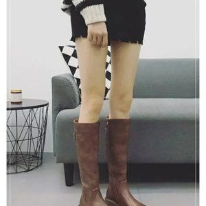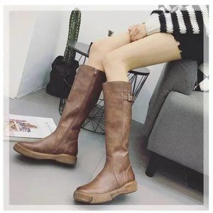 Rider Boots Ladies Belt Buckle Soft Sole Non-Slip Tall Boots Side Zipper Boots
