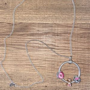 Pandora Necklace with 3 charms. Wore only a few times. Looks brand new.