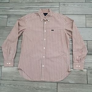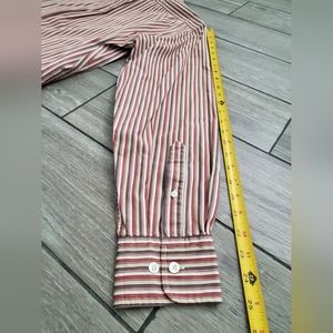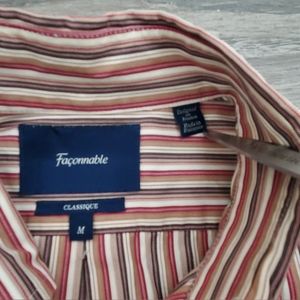 Faconnable men's 100% cotton classique tan gray burgundy striped dress shirt M
