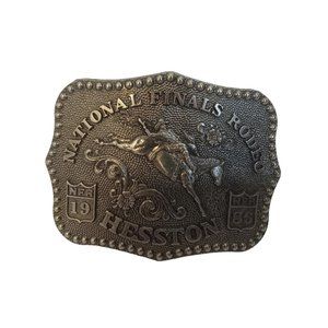 Hesston NFR Belt Buckle Metal Anniversary Series 1986 Signed By Fred Fellows
