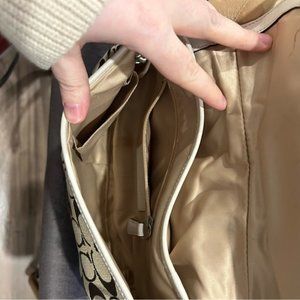 Coach 11860 Soho Signature C Logo Khaki Canvas White Leather Buckle Shoulder Bag