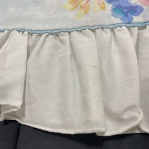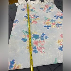 VGUC, powder blue with white ruffle trim pillow case. Has pastel watercolor bouquet print. 27 L x 19.5 W fits STANDARD bed pillow. Very pretty gives Girlhood cottage core vibes. Brighten up your space. Last photo shows flaw on 1 side visible only when inspecting. Other than that like new. NOT ANTHRO 🌟 See my reviews in the About me section 🌟