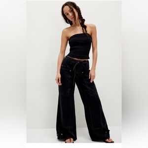 Free People Boxing Day Lace Up Flat Boot Black Leather Inside Zipper