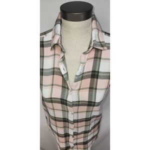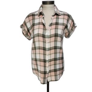 Nordstrom Rack Women's Short Sleeve Button Up Plaid Flannel Top Size XS