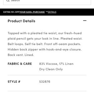 Ann Taylor Plaid Tie Waist Pencil Skirt NWOT