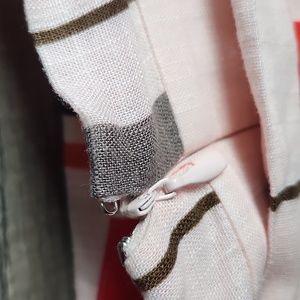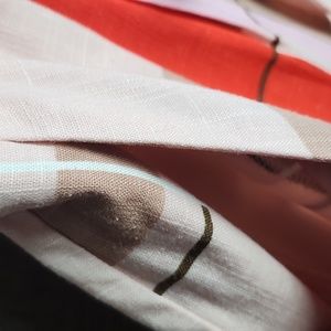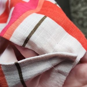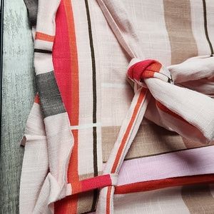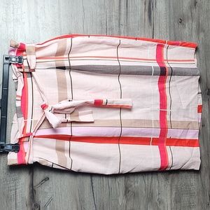 Linen blend, plaid skirt with ruffle waist and removable waist tie. Zip and hook closure in back, has pockets and is fully lined. Slit in back is still sewn closed. Waist is approx 17 inches, length is approx 27 inches. Excellent condition, NWOT. Current season style.