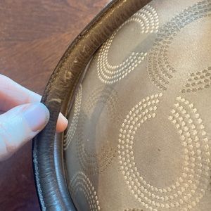 Good used condition bottom has soiling and a couple of light spots on bag. The underneath of handle has scratches and some missing color see pictures