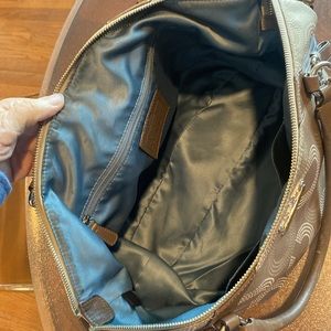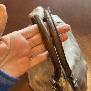 Coach Madison Op Art cream & beige with brown trim Large Sophia Satchel F159057