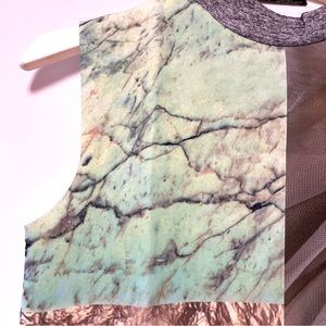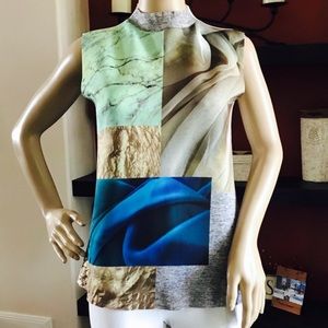 Zara Scuba Neoprene Graphic Print Top Sleeveless Mock Neck Small Colorful
