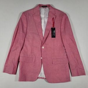 Tommy Hilfiger Red Modern-Fit Stretch Chambray Blazer Mens 42L Cotton Sport Coat