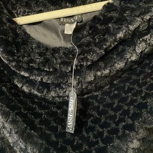 Brand new with tags, this faux fur stole is black with a slight sheen that catches the light. Never worn. From a smoke-free, pet-free home. Sold as is.