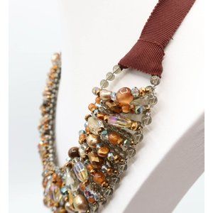 TALBOTS Caramel & Smoky Grey/Blue Beaded Collar Statement Necklace