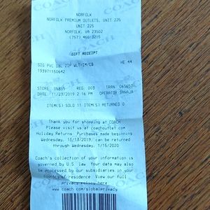 Purchased new from Coach outlet, never used. Perfect condition, no stains, tears, odors, or irregularities.