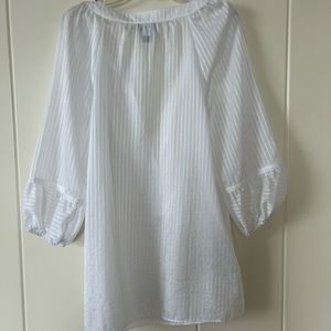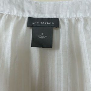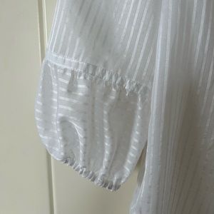 Beautiful sheer Ann Taylor Blouse. Flowy, sheer and feminine with puff sleeves and pinstriped detail