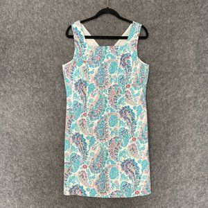 Talbots Teal & Pink Paisley Sheath Dress, Fresco Style, 14P