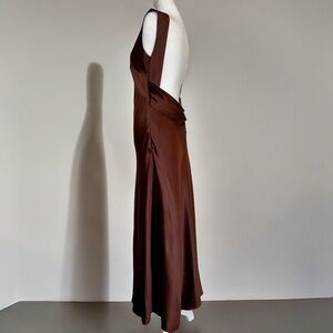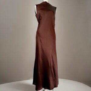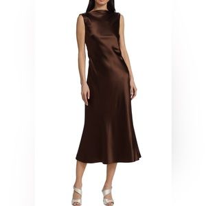 Cut on a bias, DANIELLE FRANKEL's sleek midi-dress showcases a light cowlneck and open back with a handkerchief drape panel.