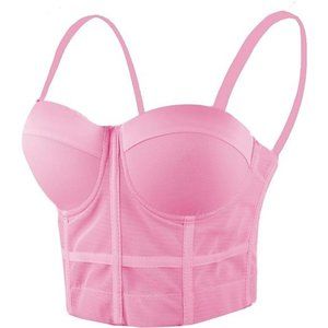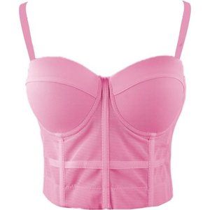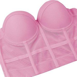 Women's Mesh Bustier Crop Top Push Up Corset Tops Bra Black