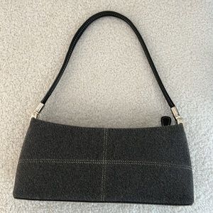 Very Y2K little vintage shoulder bag with felt fabric and faux leather handle shoulder strap. It is very clean. Hardly worn. Great neutral colors can take you from day to night.