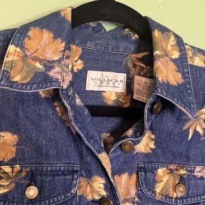 Villager sport by Liz Claiborne size small blue denim cropped button up with graphic leaves printed