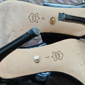 Charles David Women Heel Black Patent Leather Upper Sandal Strappy Shoes Size 7