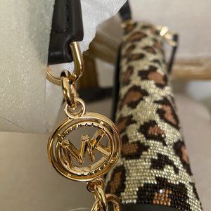 NWT Michael Kors Bradshaw Sm Leopard Beaded Leather Convertible Bag NWT