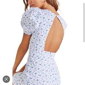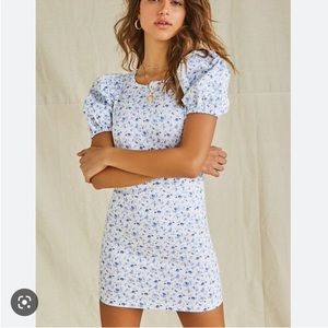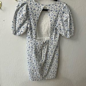Forever 21 White and Blue Floral Cotton Puff Sleeve Dress